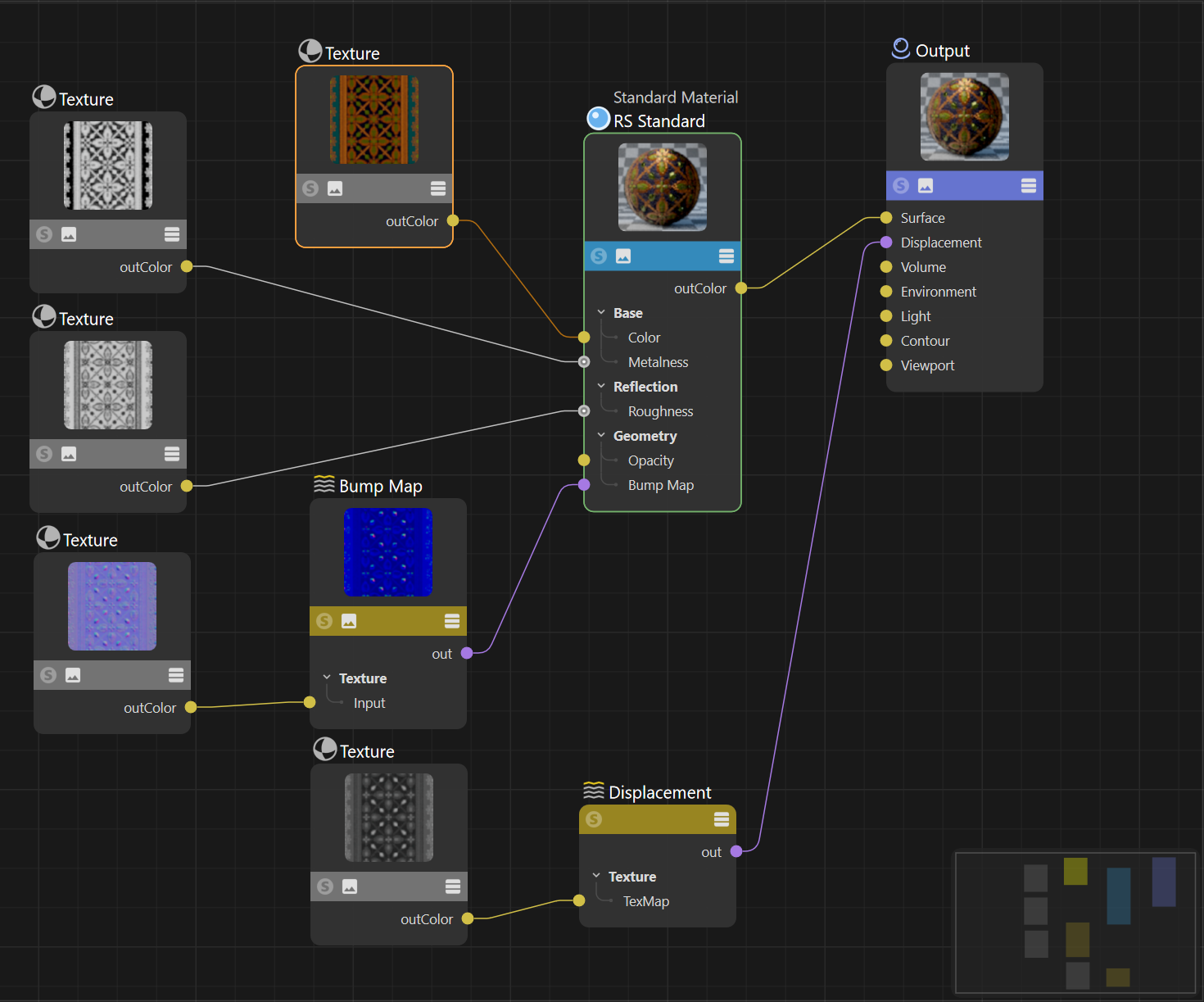Clearly, two very different materials but excellent results in both cases. But now, look at the node trees for these materials: