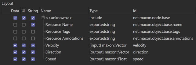 This adds the basic object properties. For nodes we do the same, in this case by adding a description called net.maxon.code.base