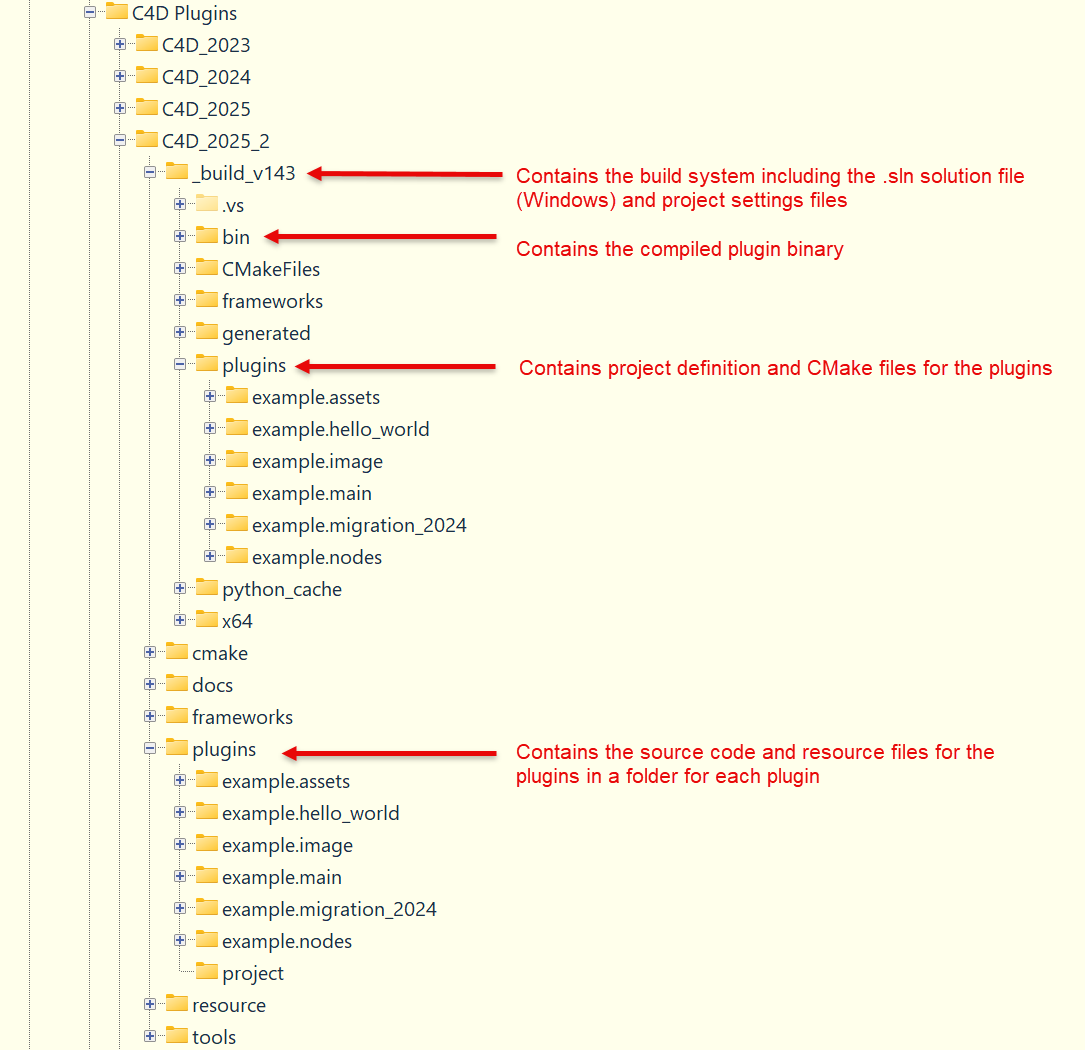 So now, I have each plugin completely self-contained, with its own build system, custom paths file, solution file and so on. That makes it really easy to reconfigure or regenerate the build system for any plugin without interfering with those of other plugins, or to reload and recompile the plugin at any time by loading its own solution file. The only small remaining issue is that the solution file for any plugin is always named 'c4d-sdk.sln' and there seems to be no easy way to change that.
