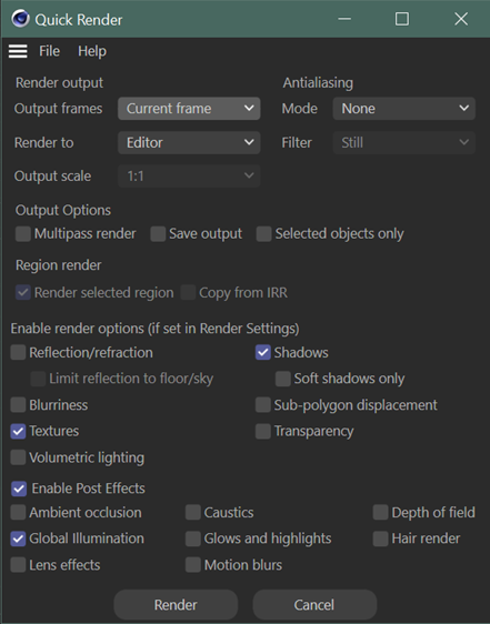 Important: QuickRender ONLY works with the standard renderer in Cinema 4D. It does not work with Redshift or third-party render engines.