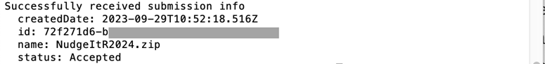 Note that you need the submission ID the service returned when the file was submitted. The return will look like this: